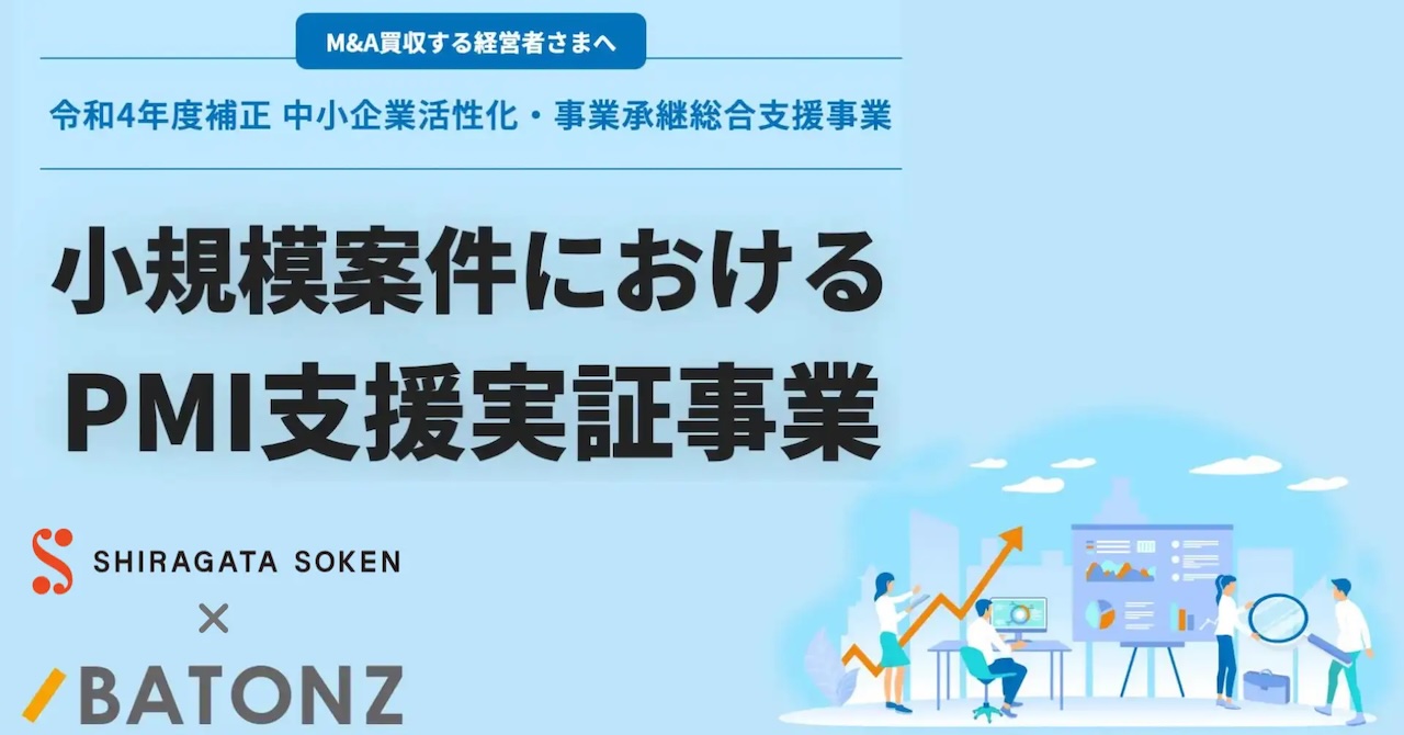中小企業向けコンサルティングファームである白潟総合研究所がバトンズと協業し、中小企業庁が管轄するPMI支援実証事業を開始